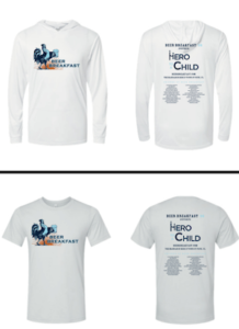 We keep the swag fresh with the assistance of Architectural Art and Trinity Graphics featuring Beer Breakfast hoodies, baseball caps, visors, guys and gals dri-fit shirts, stickers (thanks to Adam…. stickers!), and BB koozies! Prior event swag will also be there if you missed them! I couldn’t do this without so many of my wonderful friends donating their time and talents to our merry mission! The more you buy, the more money we can raise for Hero To A Child.